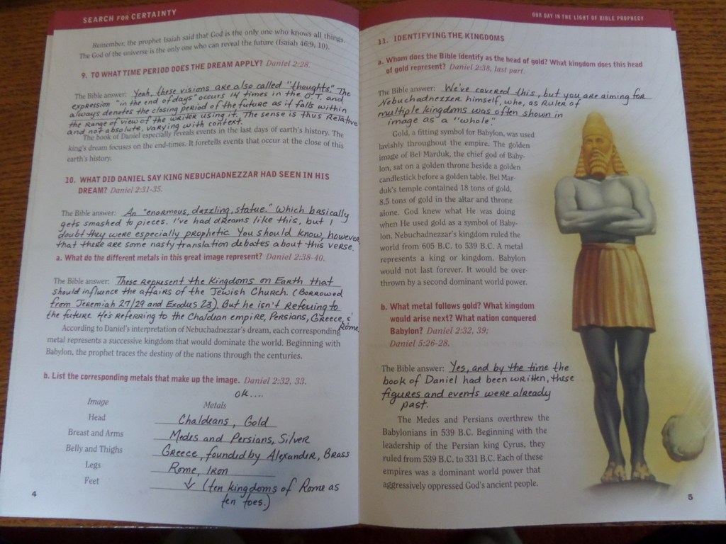 The last door-to-door evangelists who appeared on my porch prior to the COVID-19 pandemic were Seventh-Day Adventists. And, as is relatively standard for their mission, I was left with a question-and-answer pamphlet called “Our Day in the Light: Certainty for the Future” that was designed for me to fill out prior to our next meeting, when they would be returning to talk about my answers to a series of interestingly-framed Biblical questions. Normally, this is the kind of religious literature that most people simply throw away, but I, being an anthropologist, have kept a library of it!